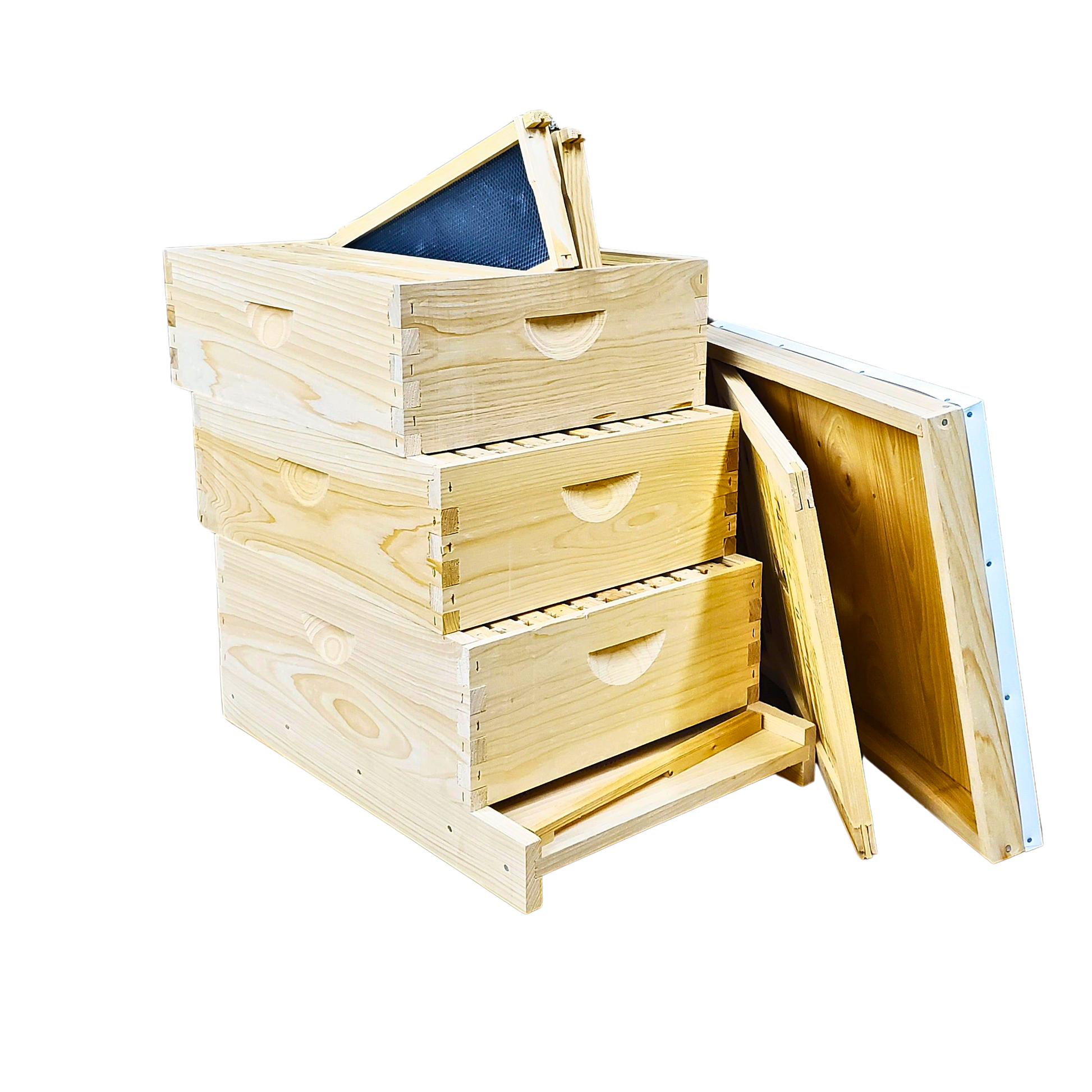 This cypress Langstroth hive is a complete kit with the woodenware needed to start your first beehive. The beekeeping supplies in this kit include: