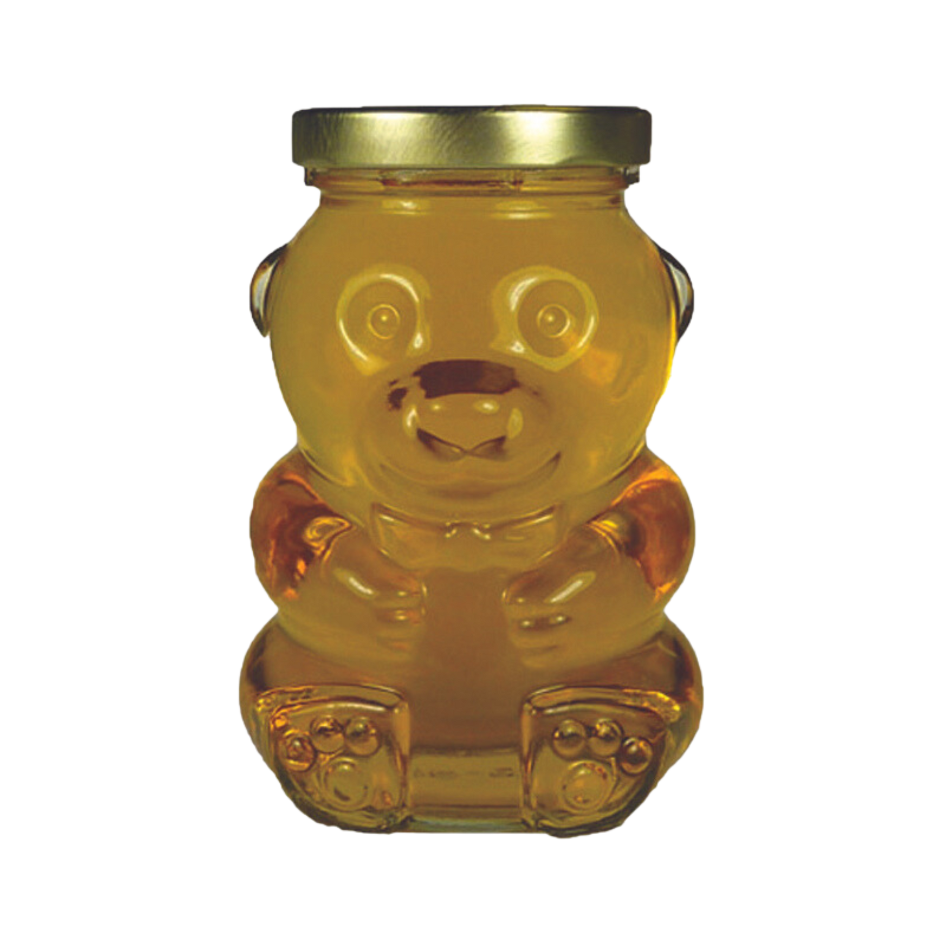This 12 oz. glass bear jar is truly unique and a one-of-a-kind honey jar. If you are looking for something just a little unique, this is it.