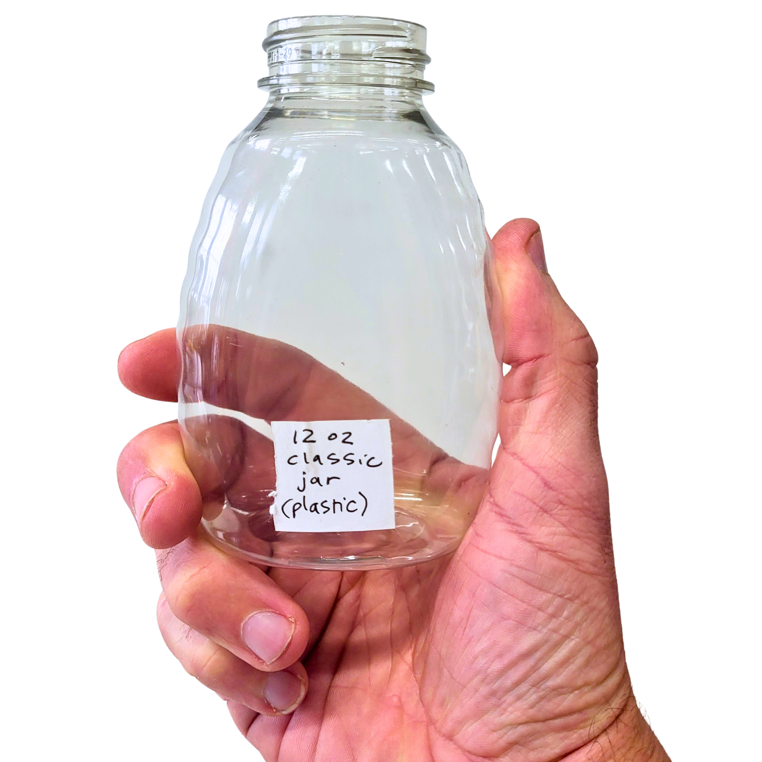 These 12 oz. classic-shaped plastic honey bottles follow the same design as our classic glass jars, but in a convenient, easy-to-use plastic bottle. These are the most popular shapes of plastic honey bottles besides the honey bear.