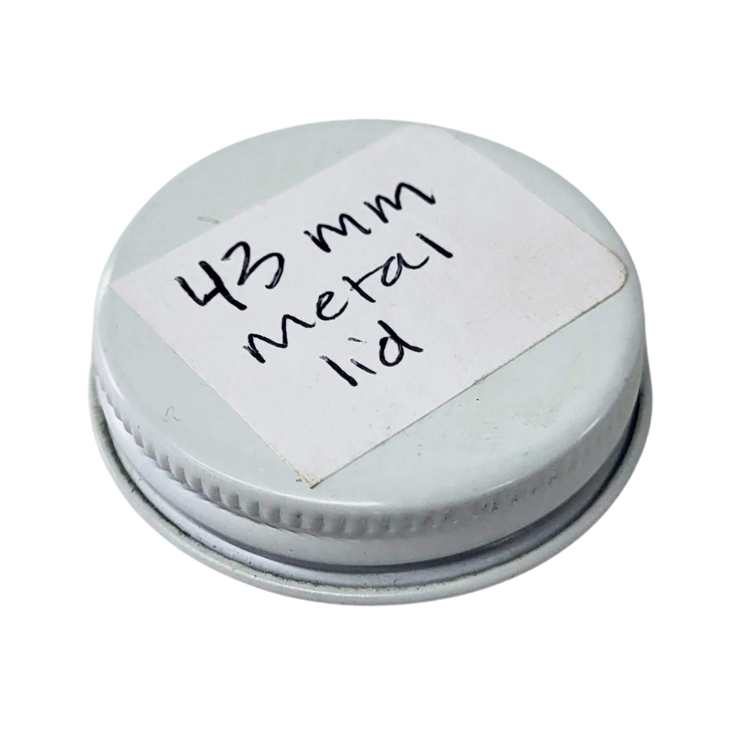 Our 43mm metal jar lid is a single-piece lid with continuous threads. Each lid contains a plastisol liner that help keeps an airtight seal when the lid is tightened onto the jar.