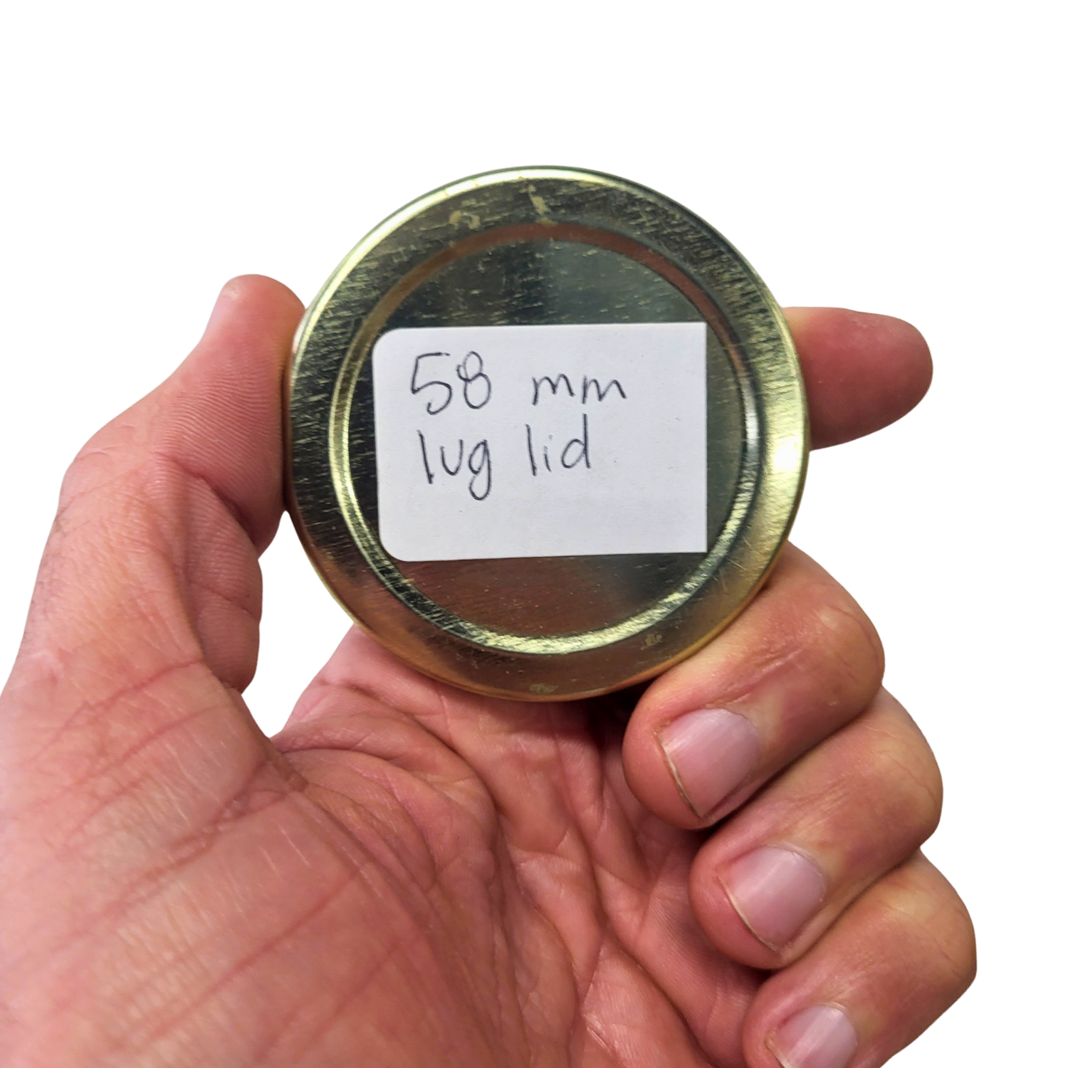 Our 58mm metal jar lid is a single-piece lid with a lug thread. Each lid contains a plastisol liner that help keeps an airtight seal when the lid is tightened onto the jar.
