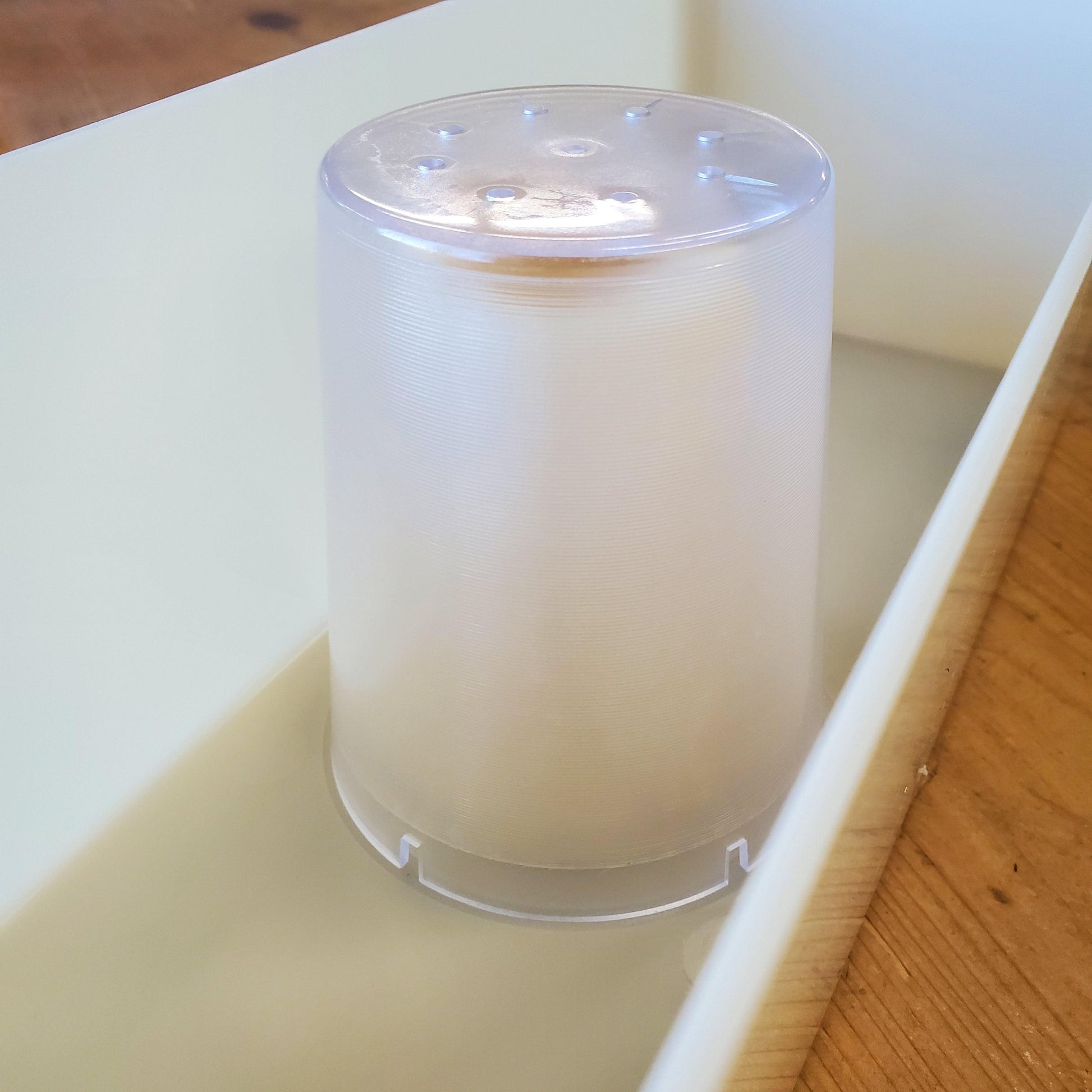 The feeder can sit over the 8 Frame inner cover or 5 Frame Inner Cover or directly over the frames in a hive. Bees access the food through a hole in the bottom where they can feed on a small amount of syrup without having access to the whole container of syrup.