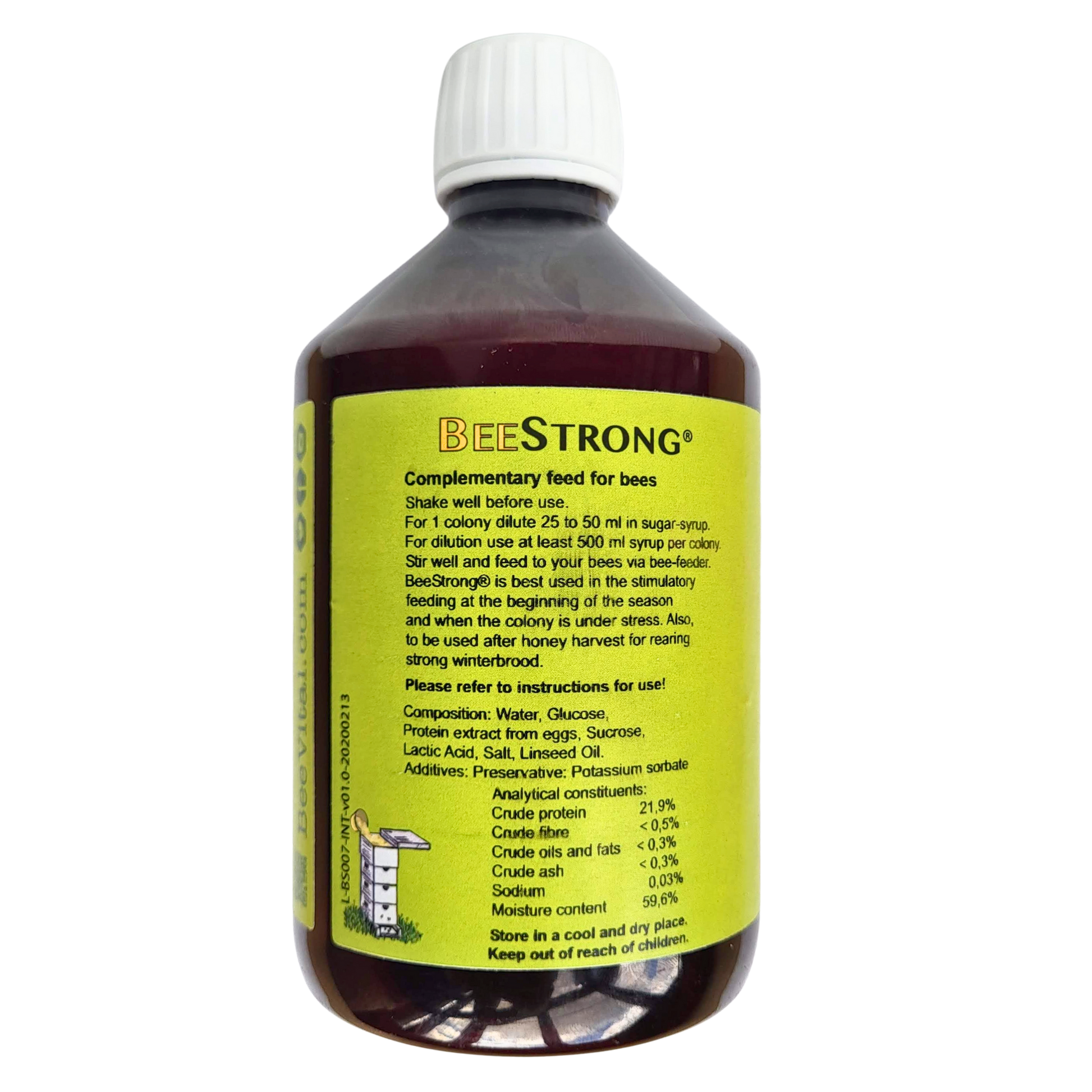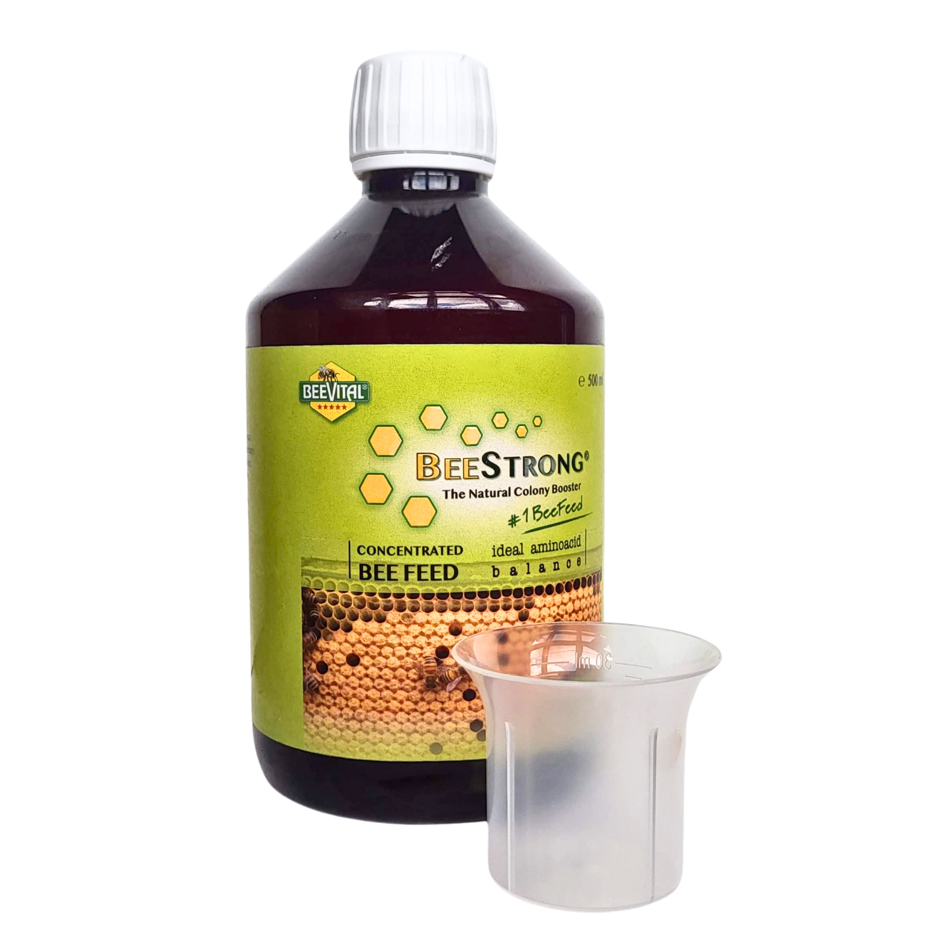 BeeStrong® by BeeVital is a high-quality bee feed concentrate derived from natural sources designed to foster resilient bee colonies. It enhances brood health, fortifies larvae, and improves overall hive vitality. BeeStrong supports colony development during stress periods and increases honey yield from healthier bees.