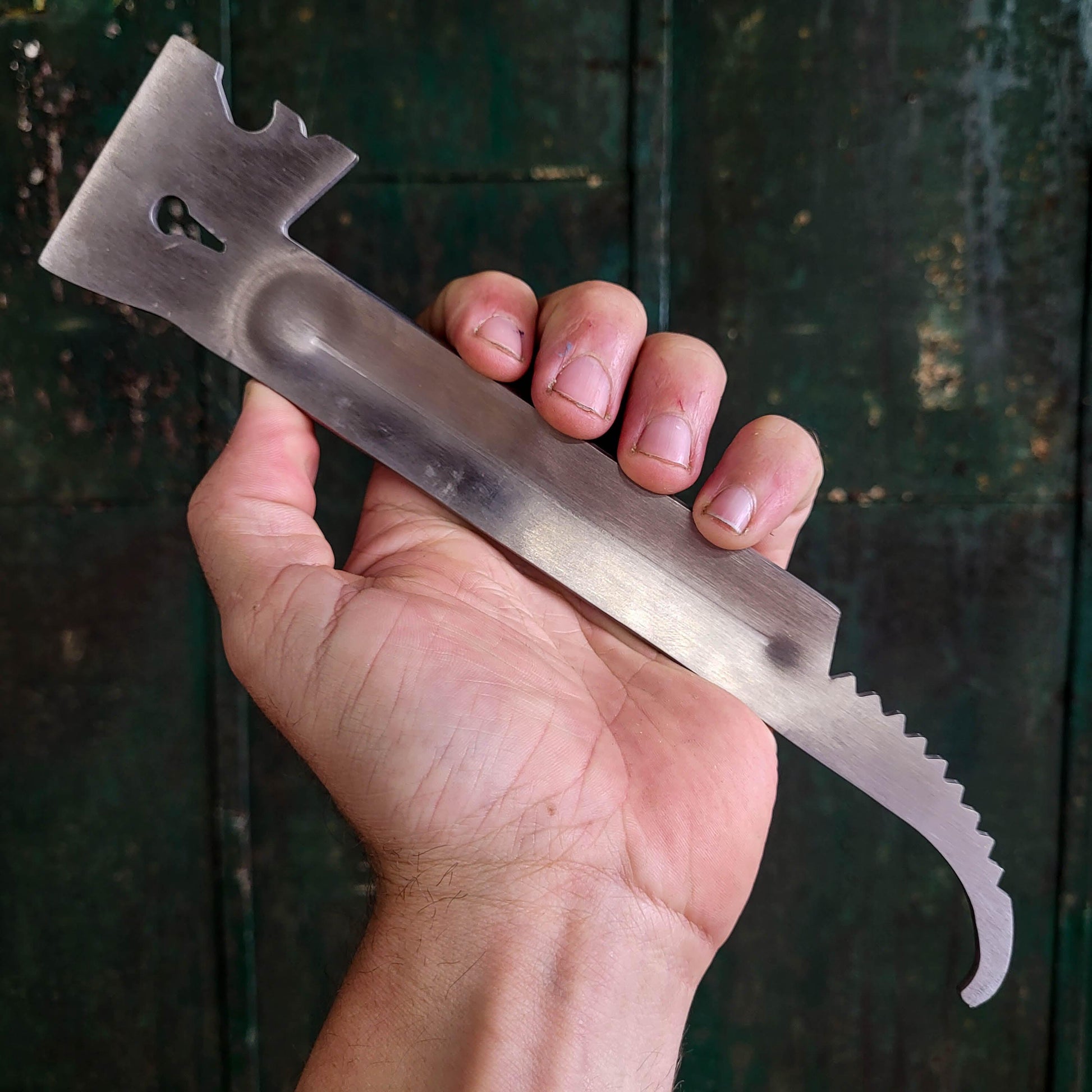 This hive tool also features a bottle opener just for fun and a hole for hanging the hive tool or for prying nails.