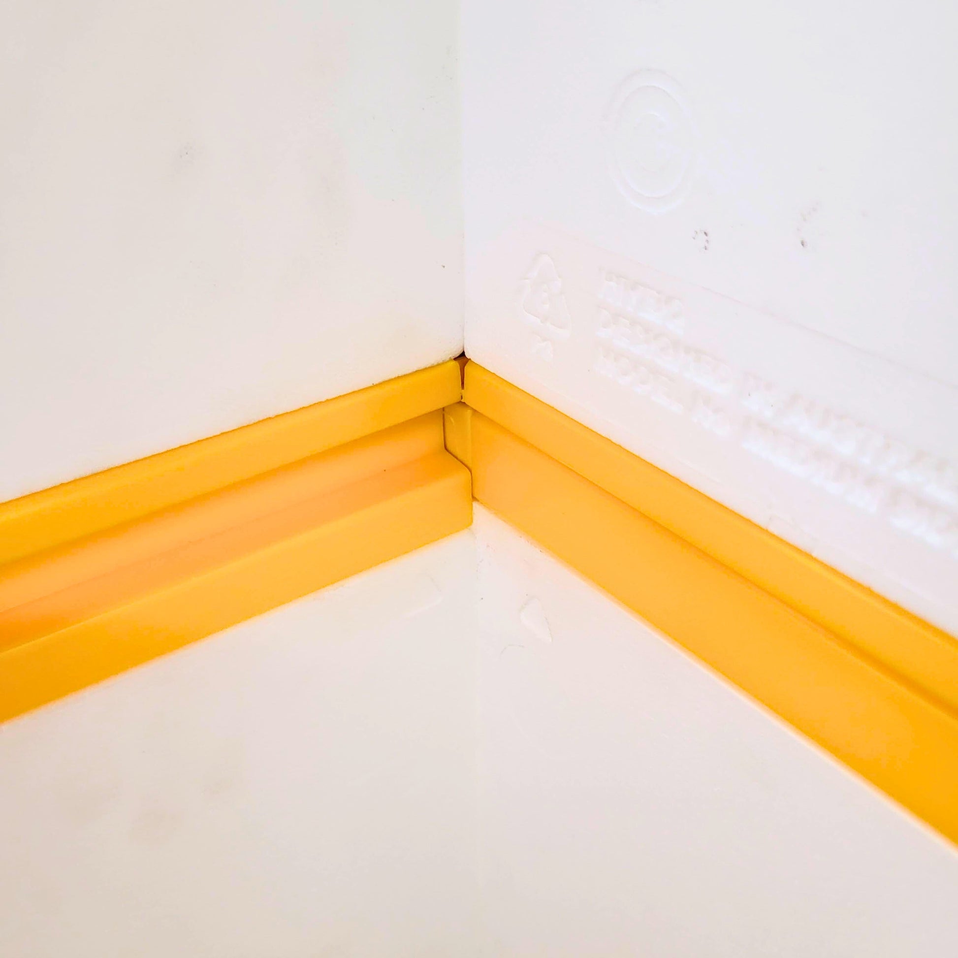 This interlocking design between boxes ensures proper insulation seals, keeps pests like small hive beetles and moths out, and also stops hive tool wear in the corners. It is a one-of-a-kind solution for beekeepers.