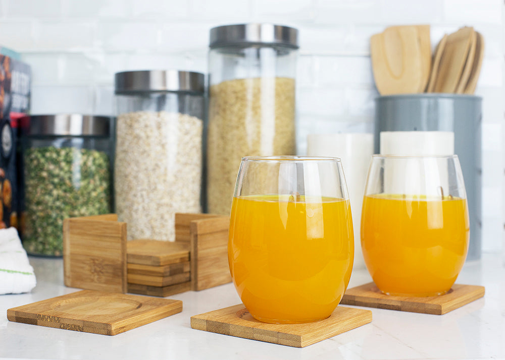 Absorb the messy drips from the bottom of your drinks, while dressing up your beverages with style using this square bamboo coasters. The indented center keeps the condensation from your ice cold libations from sliding off the surface of the coaster and on to your furniture, while also acting as shield to the heat from your piping hot brews like that morning cup of joe. Perfect for the home bar and the kitchen, the weighted bamboo construction prevents the coasters from skating around the table, while the natural graining looks great with all types of décor. Part art. Part accent furniture, this decorative drink coaster comes in a set of six these coasters will earn a permanent spot at your next party. MATERIAL: Bamboo. SIZE: 4.75x4.75x2.5 Inches. COLOR: Natural