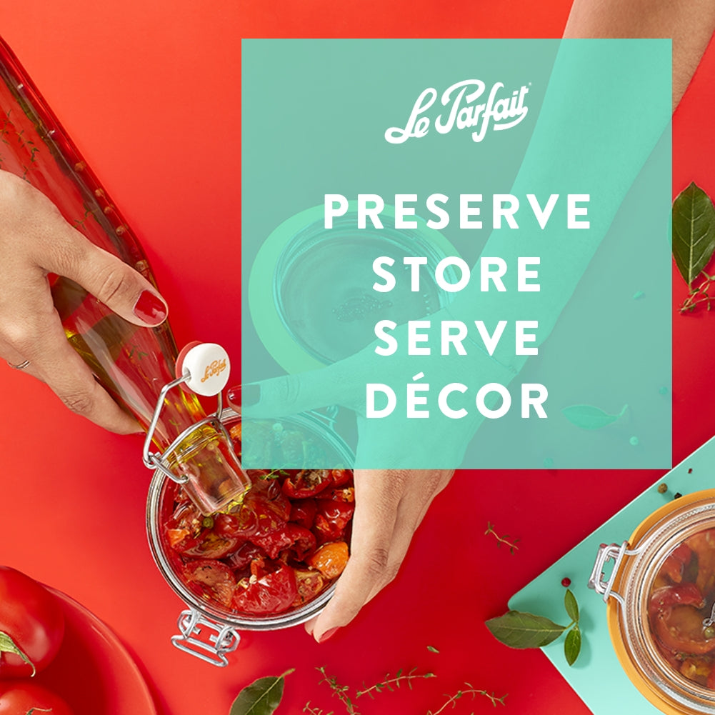 - PRESERVE, STORE, SERVE, DÉCOR - Utilize these brand new, versatile Le Parfait glass jars to preserve your seasonal harvest, revitalize your pantry storage and bulk-goods shopping, serve up a decadent homemade spread, or craft the perfect gifts for your loved ones.
