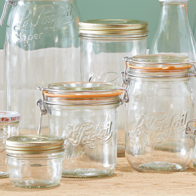 - PRESERVE, STORE, SERVE, DÉCOR - Utilize these brand new, versatile Le Parfait glass jars to preserve your seasonal harvest, revitalize your pantry storage and bulk-goods shopping, serve up a decadent homemade spread, or craft the perfect gifts for your loved ones.