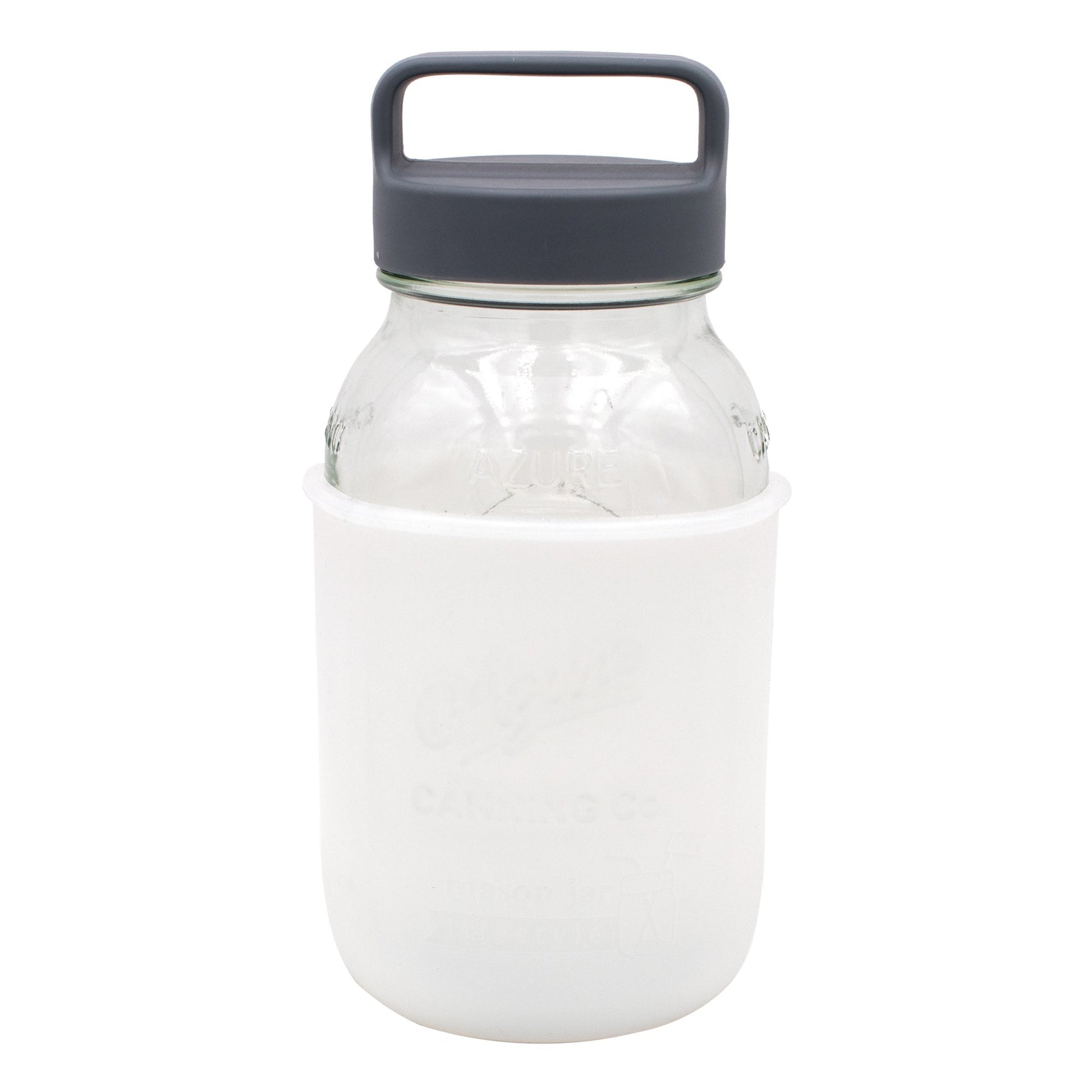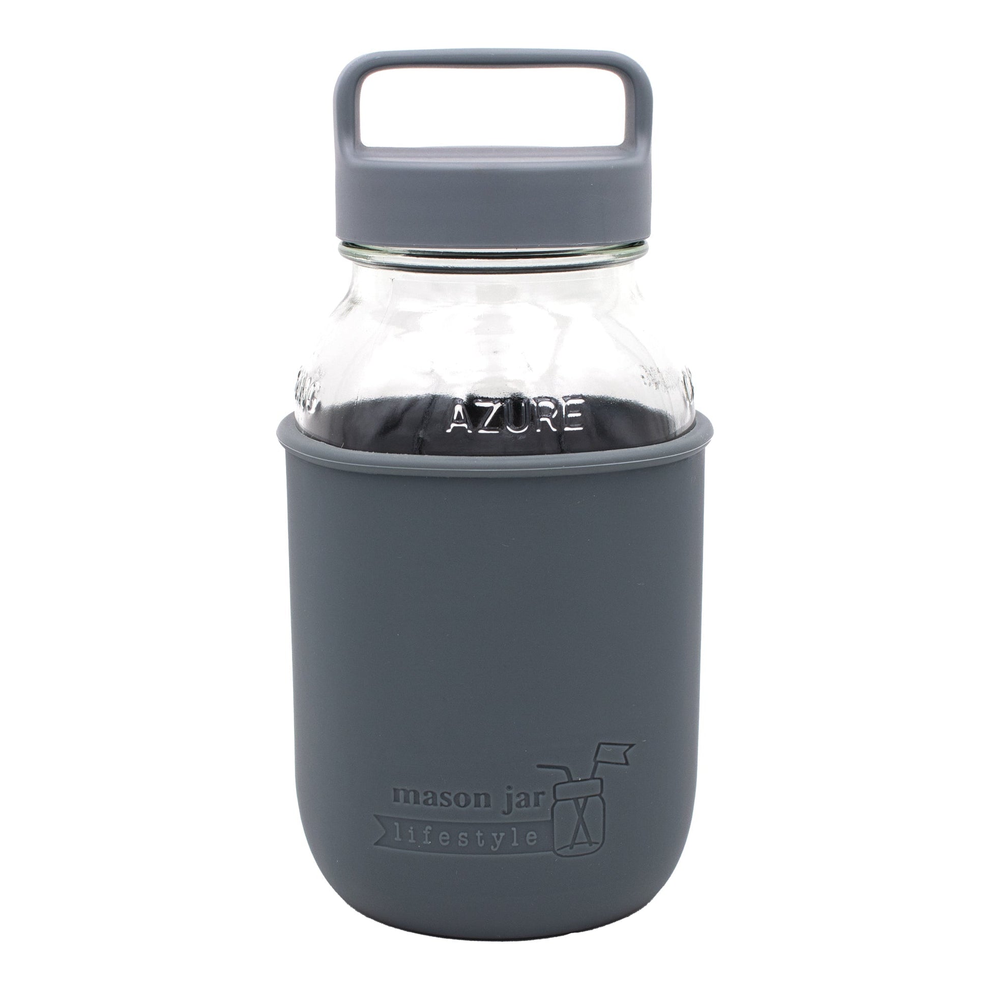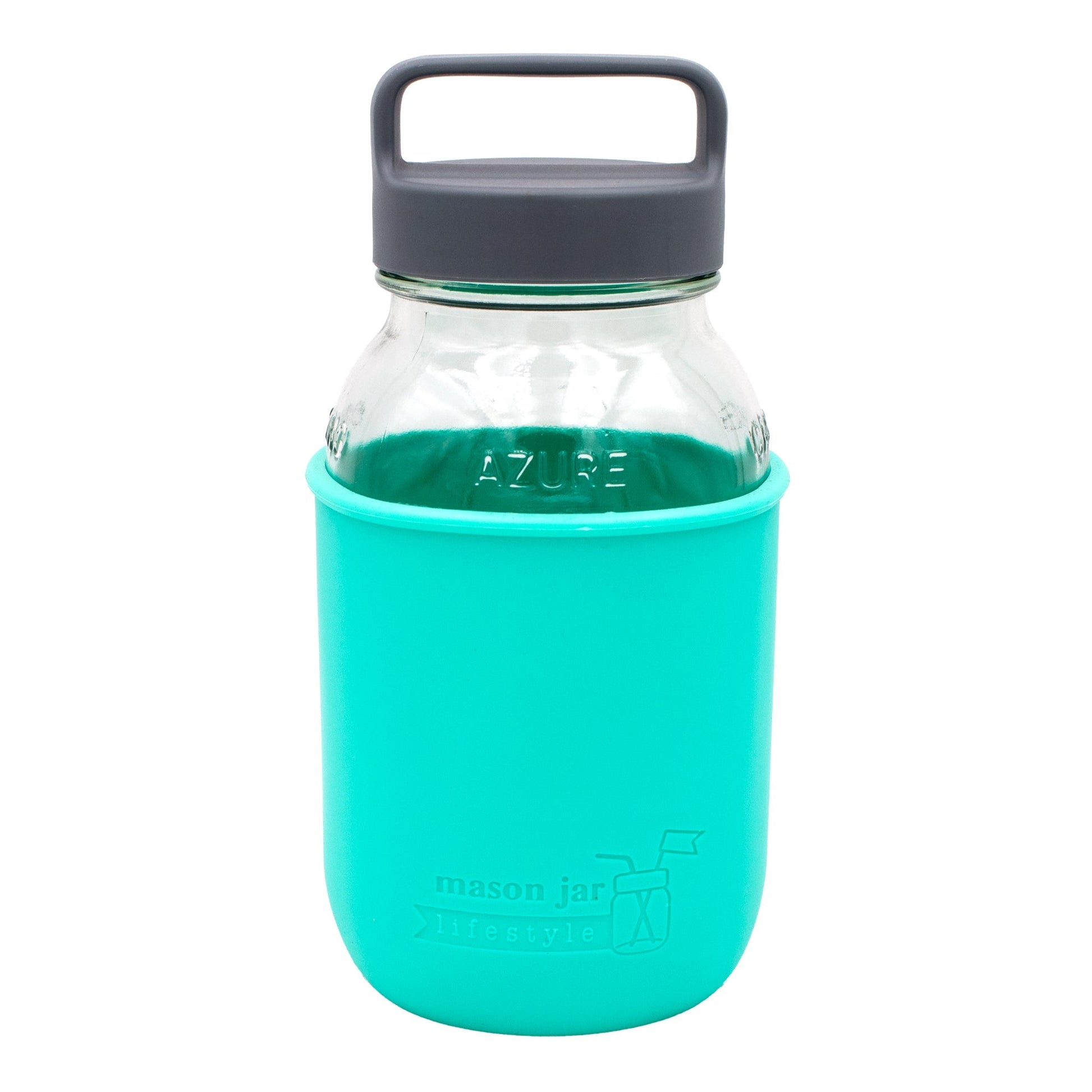 Mason Jar Lifestyle 32oz Quart Glass Water Bottle with Silicone Sleeve & Carry Handle