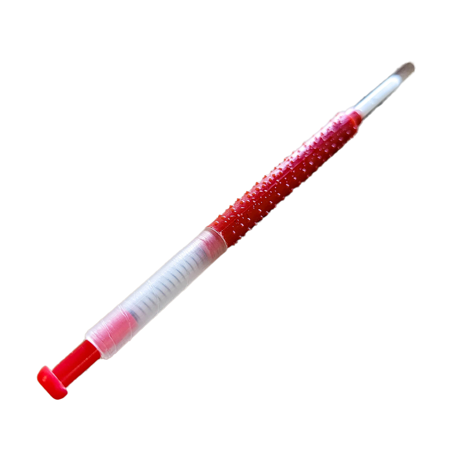 This Plastic Grafting Tool With Plastic Pusher gives you excellent control over the larvae. The tip is a small, flexible plastic tab that slides up under the larvae and pushes it off when you push on the end. The plastic end is flexible and can be adjusted to the beekeeper's needs. The plunger on the end gently pushes the bamboo off the end of the tip and into the cell.