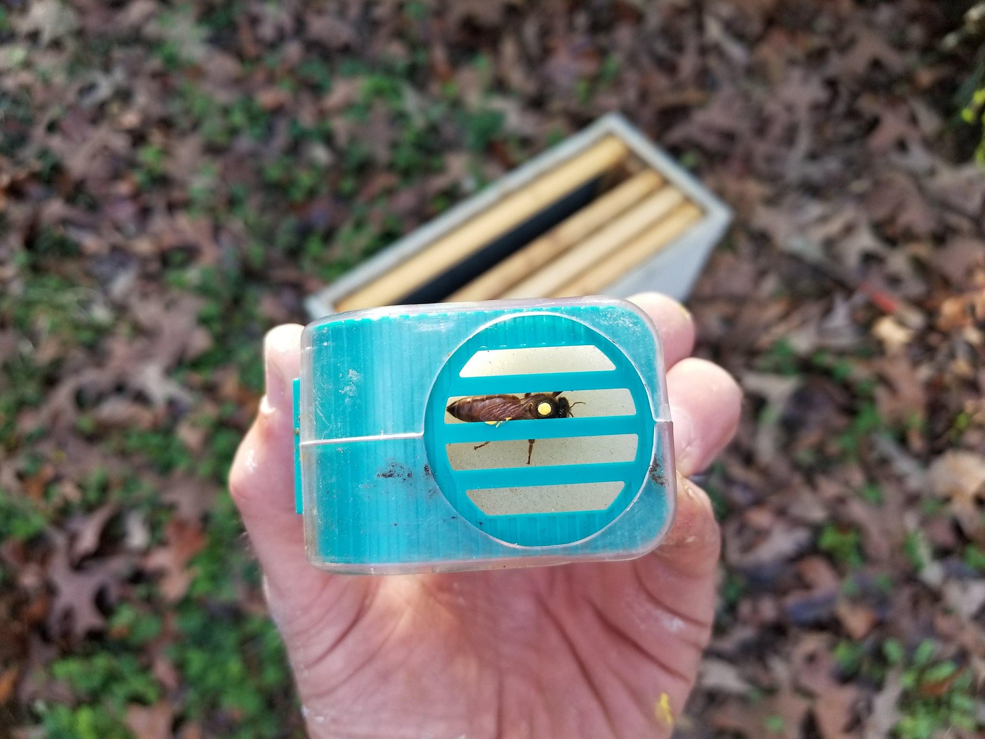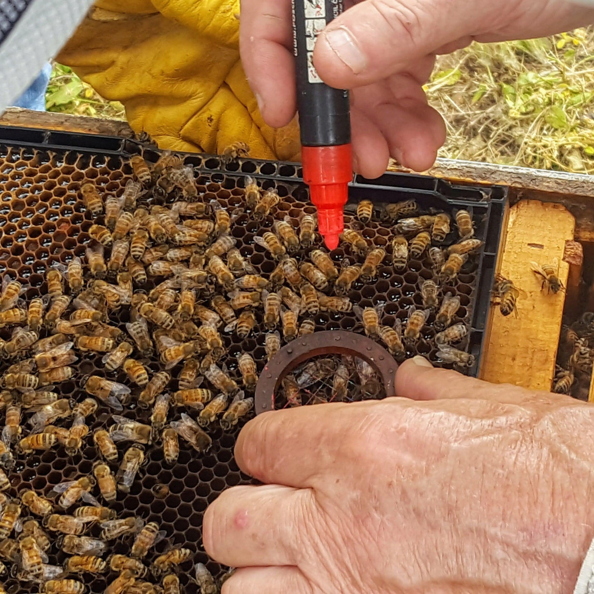 The spring-loaded clip can be opened to allow the queen to be placed between the sides of the clip. The slots are wide enough that a worker can pass through but small enough that the queen cannot.