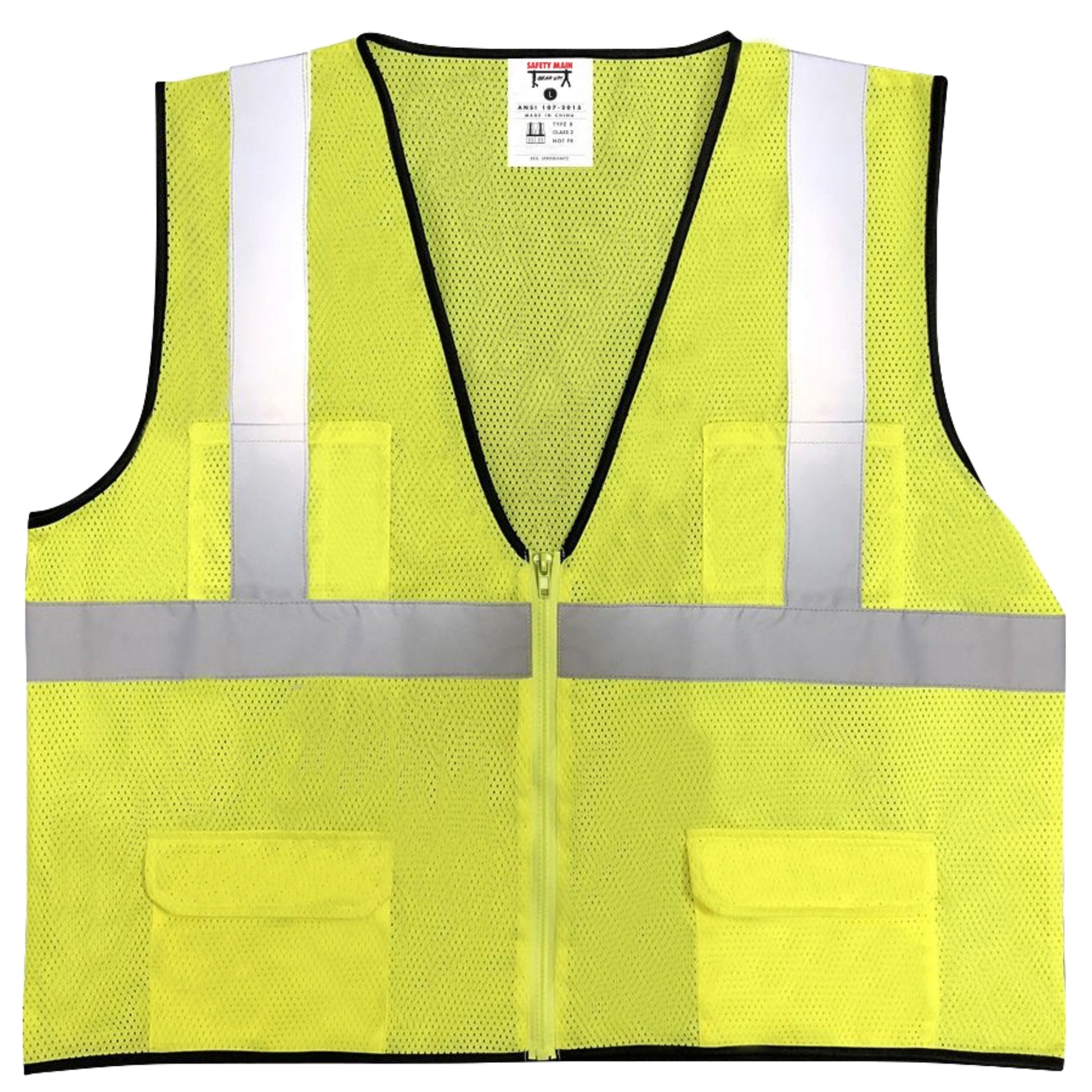 The Safety Main 05EAMYZ Economy Vest, Class 2, All Mesh, Hi-Vis Yellow is a lightweight, breathable safety vest designed for high-visibility performance in demanding work environments. Featuring a full polyester mesh construction for optimal airflow, 2" reflective striping on the chest, shoulders, and back, two convenient breast pockets, and a secure half-length zipper closure, this vest ensures both comfort and functionality. Ideal for construction, traffic control, emergency response, and industrial settings, it enhances worker visibility and safety during both day and night operations. This vest meets ANSI/ISEA 107-2015 Type R, Class 2 standards, ensuring compliance with industry safety regulations.