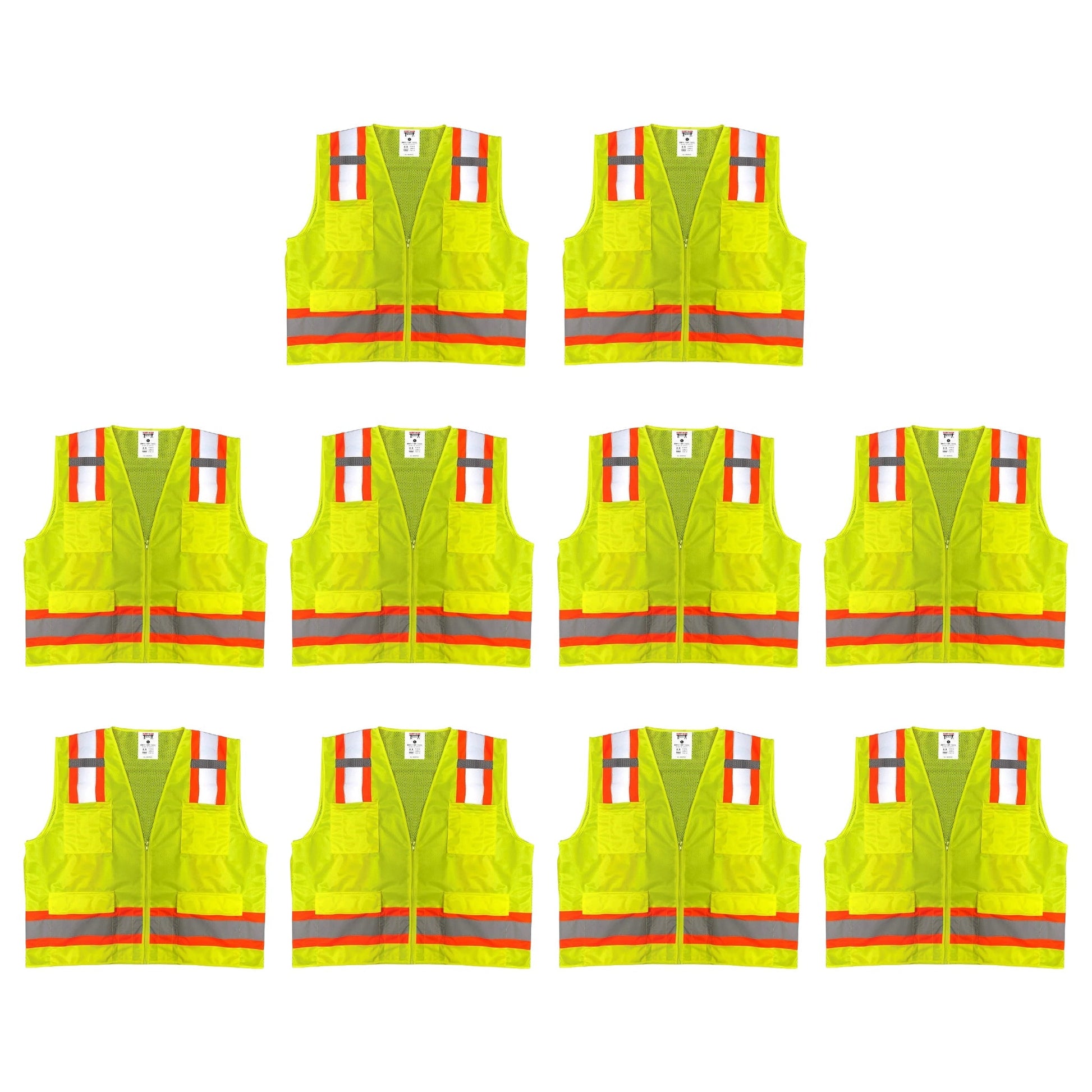 Safety Main 05TTSYZ Surveyor Vest, Class 2, Solid Front, Mesh Back, Hi-Vis Yellow, Pack of 10