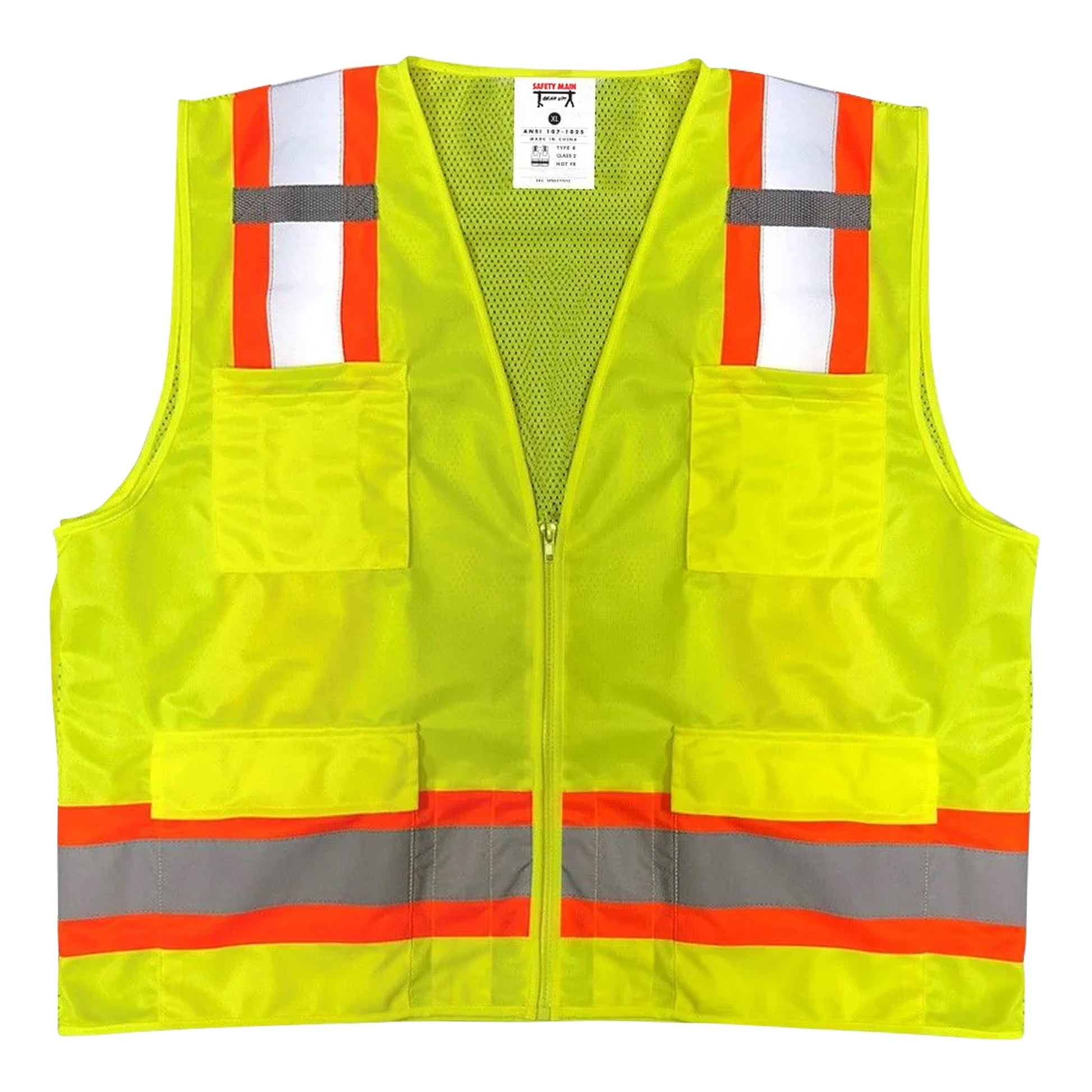 The Safety Main 05TTSYZ Class 2 Surveyor Vest with Solid Front and Mesh Back in Hi-Vis Yellow is a high-performance safety vest designed to enhance visibility and durability on busy job sites. Featuring a bright hi-vis yellow color for maximum daytime visibility, a solid polyester front for structure and tool support, and a breathable mesh back for comfort in warm conditions. This vest delivers essential protection and functionality for construction crews, utility workers, and surveyors who demand comfort and compliance without sacrificing performance. ANSI/ISEA 107-2020 Class 2 certified to ensure trusted safety standards are met in high-traffic environments. Available in Medium to 3X-Large sizes.