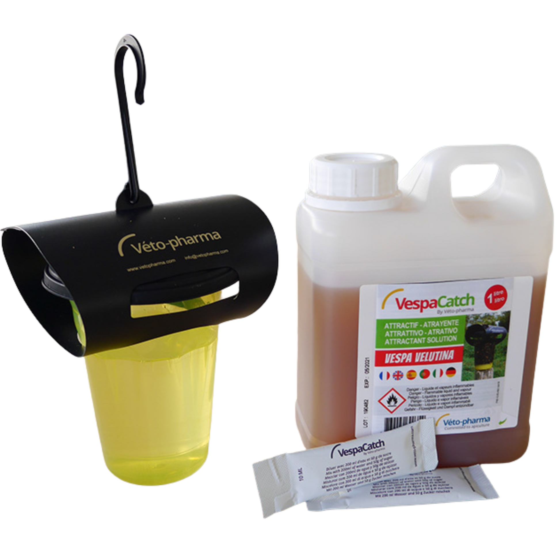 This Vespa Catch by Veto Pharma is designed to maximize the capture of Asian hornets and limit the trapping of other pests. The trap is composed of a cover pierced with two entrance wells.